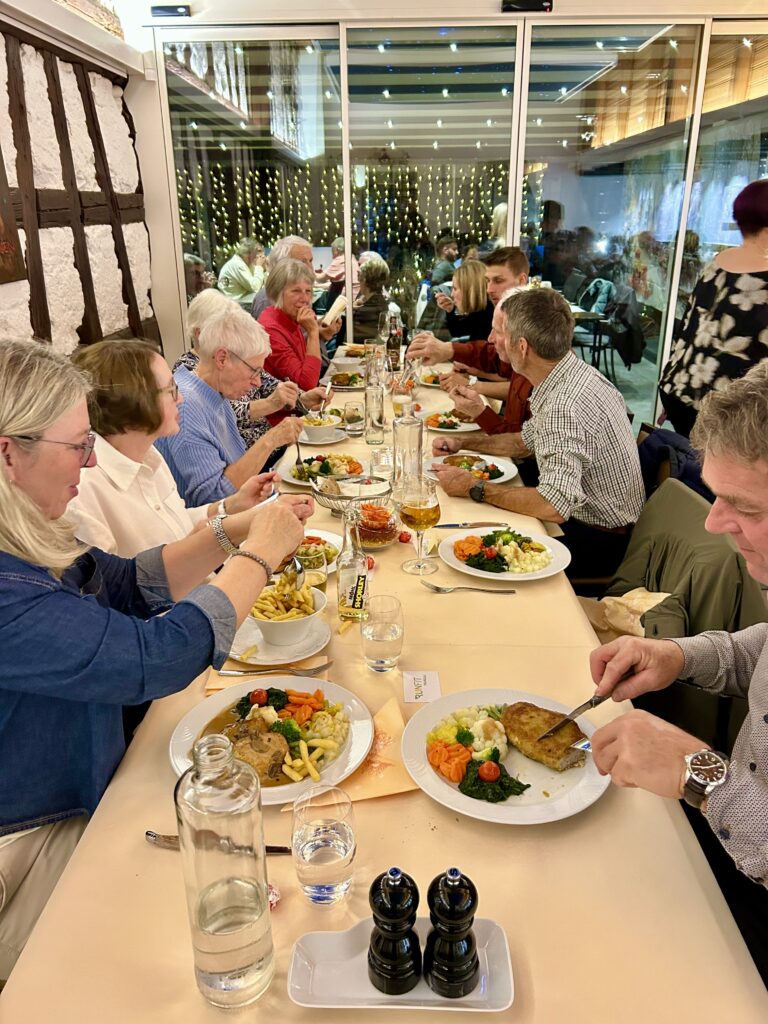 Am Abend lädt der Verein alle mit Partnerinnen und Partner zum Nachtessen im Ochsen Bänikon ein. Vizepräsident Oliver Burkhard begrüsst die Anwesenden und siniert darüber, dass die Weihnachtsdeko ihn daran erinnern, wie die drei grossen Run-Fit-Anlässe mit den Jahreszeiten verbandelt sind: Mit dem Wigoltinger Abendlauf startet der Sommer, mit dem Ottenberger Panolauf endet er und mit dem Frauenfelder beginnt die Weihnachtzeit.