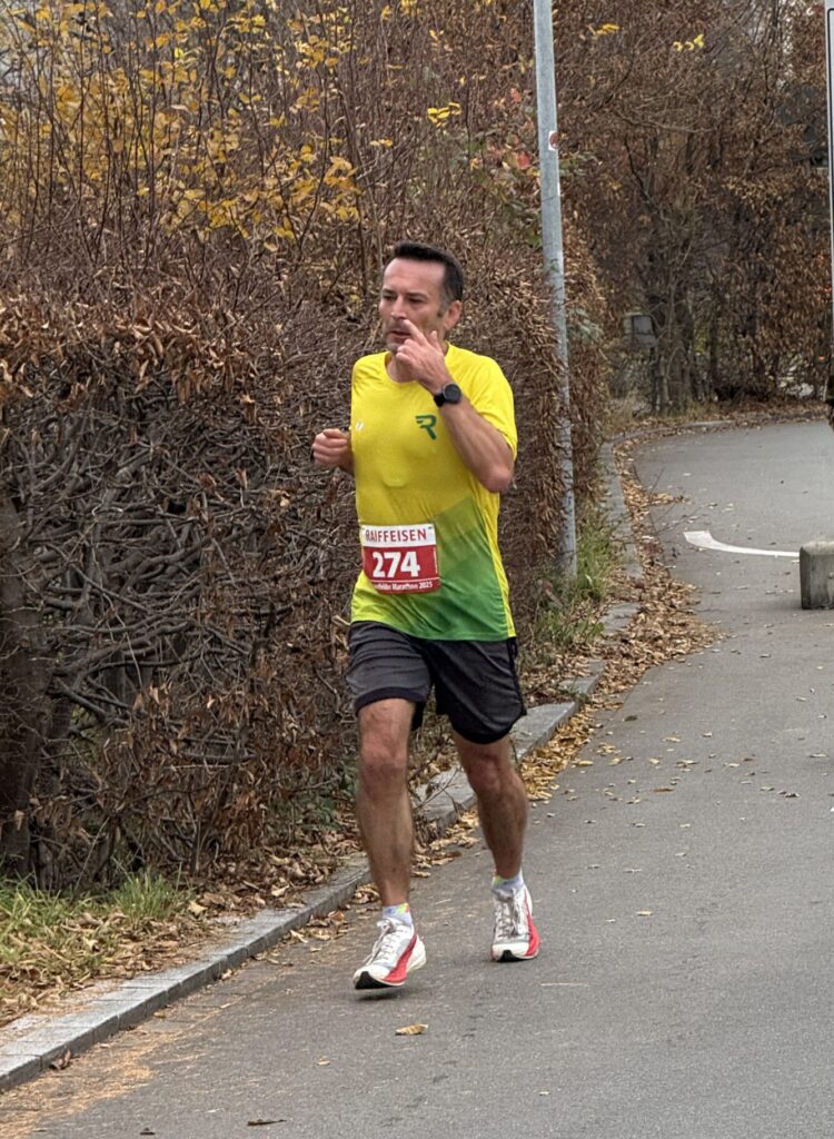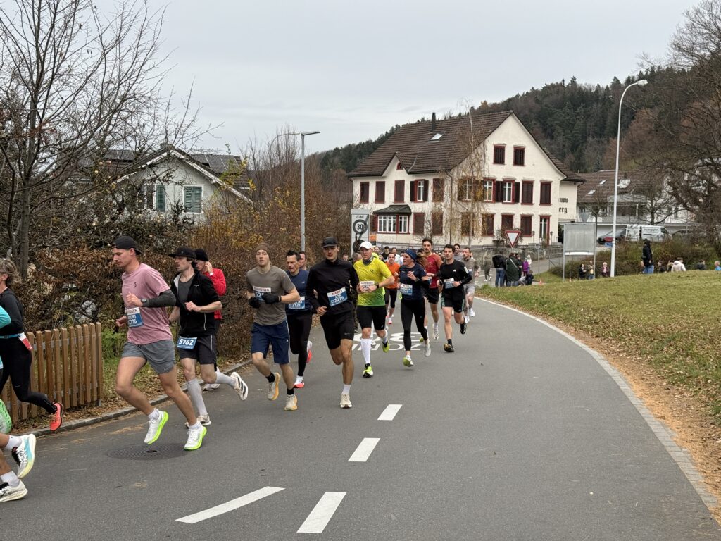 Weit vorne in der Rangliste platziert sich Liviu Legian: In der Kat. 20 wird er mit 1:33:03 52. von 269! Zeitlich kommt am Kassier jedoch niemand vorbei: Michi Traber belegt mit 1:25:18 in der Kat. 30 den 35. Rang von 265 Läufern! Sehr gut! Roman Hablützel wird mit 1:33:16 74. In der Kat. 50 verhält sich Passivmitglied Urs Alig sehr aktiv, mit 1:47:38 wird er 85. von 178, Vizepräsi Oliver Burkhard spürt den Trainingsmangel – auf dieser Distanz – schafft es aber unter zwei Stunden.